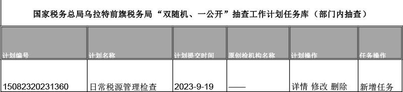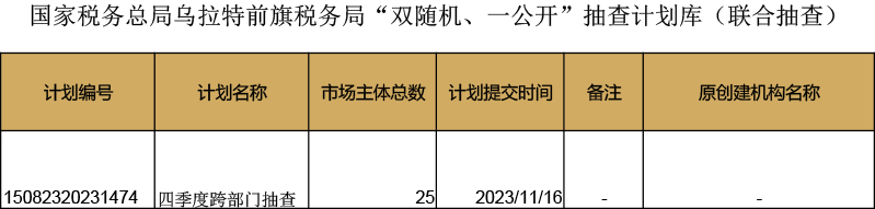 国家税务总局乌拉特前旗税务局“双随机、一公开”抽查计划库