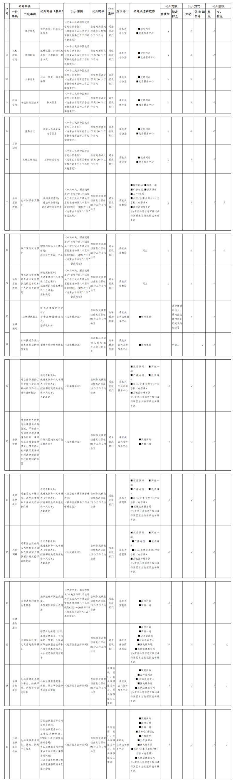 公共法律服务领域基层政务公开标准目录