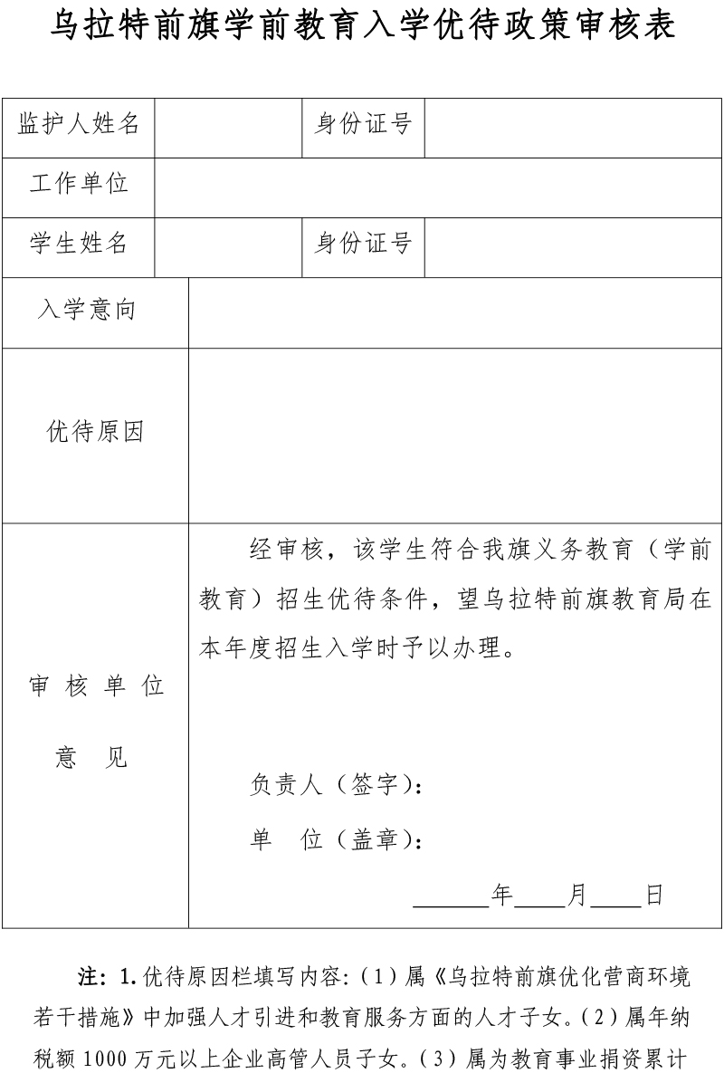 3.优化营商环境引进高层次人才子女及为教育事业捐资助学的企业、个人子女(后附优待政策审核表)。