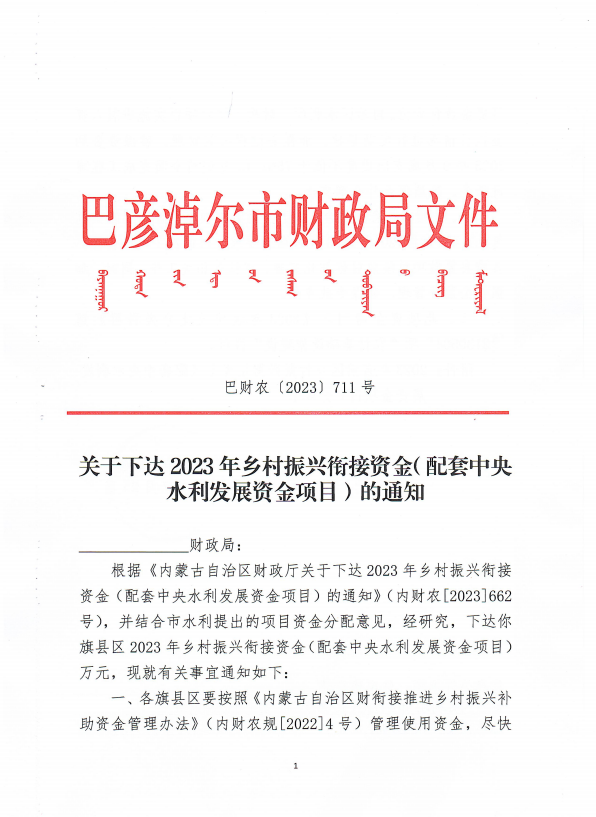 现将财政分配到水利局的2023年乡村振兴衔接资金(配套中央水利发展资金项目)资金450万元,通过旗政府网站进行公告,欢迎社会各界监督。
