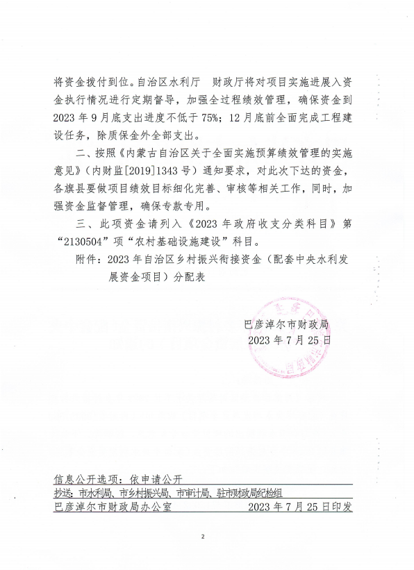 附:2023年乡村振兴衔接资金(配套中央水利发展资金项目)的通知