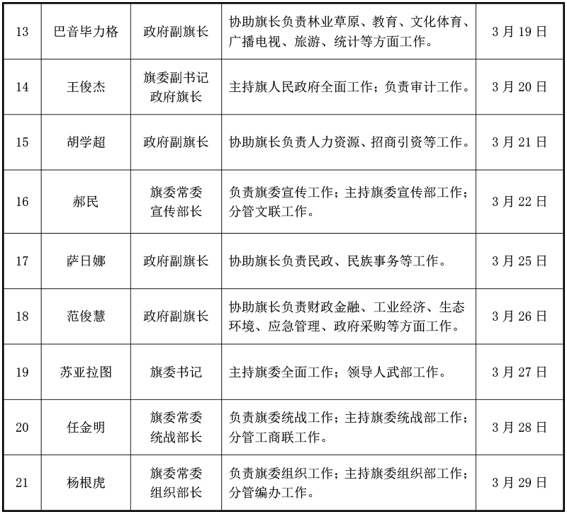 乌拉特前旗2024年3月份领导干部信访下访工作日安排
