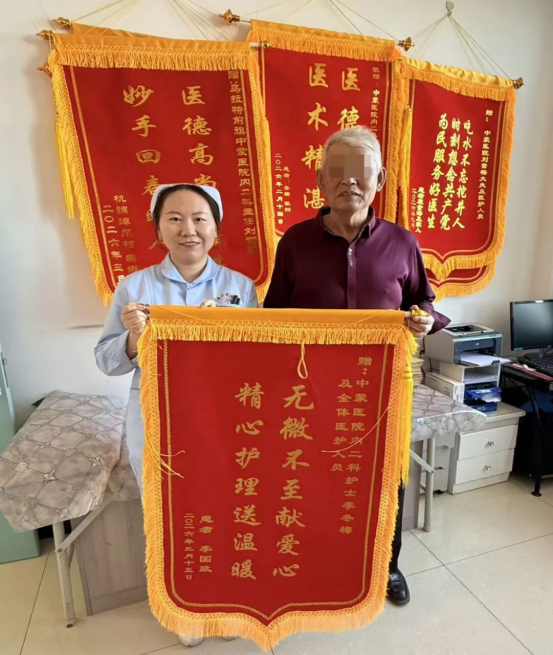 一面锦旗,一份认可,背后更是整个团队的并肩坚守。科室主任刘雪梅作为学科带头人,始终秉持精湛医术与严谨治学态度,带领医疗团队深耕诊疗一线,结合患者病情精准制定个性化诊疗方案,在全力解除患者病痛的同时,注重加强医患沟通,传递人文关怀,用责任与担当守护患者健康。护士长张宇以身作则、恪尽职守,带领护理团队严格落实规范化护理操作,深耕细节优化护理流程,从患者入院接待到出院指导,全方位提升护理服务质量与安全。