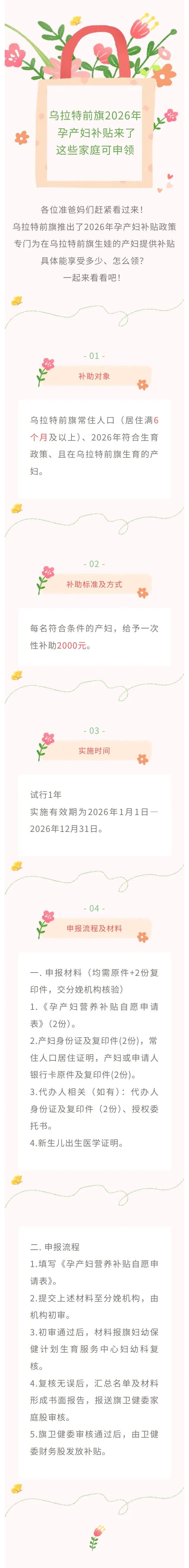 【图解】乌拉特前旗2026年孕产妇补贴来了!这些家庭可申领