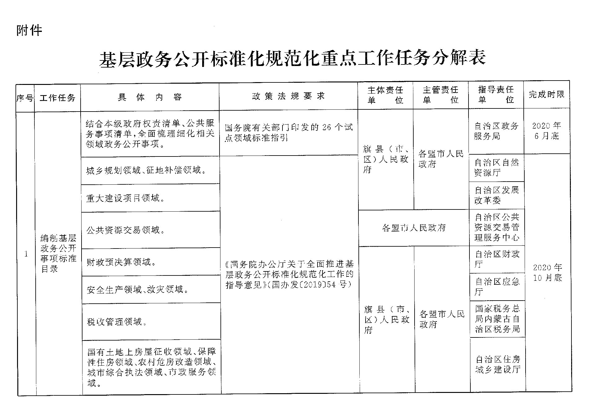 附件:基层政务公开标准化规范化重点工作任务分解表